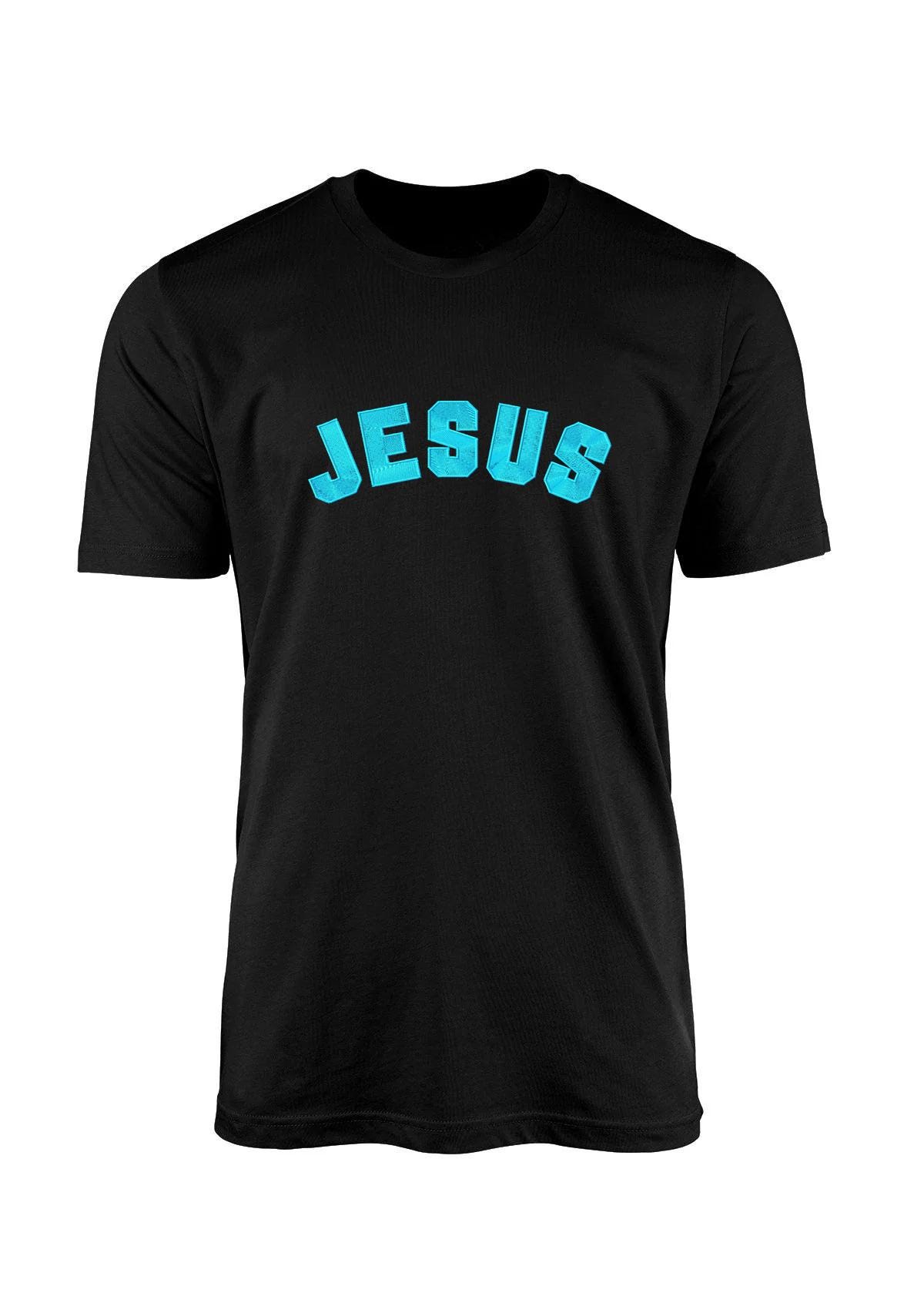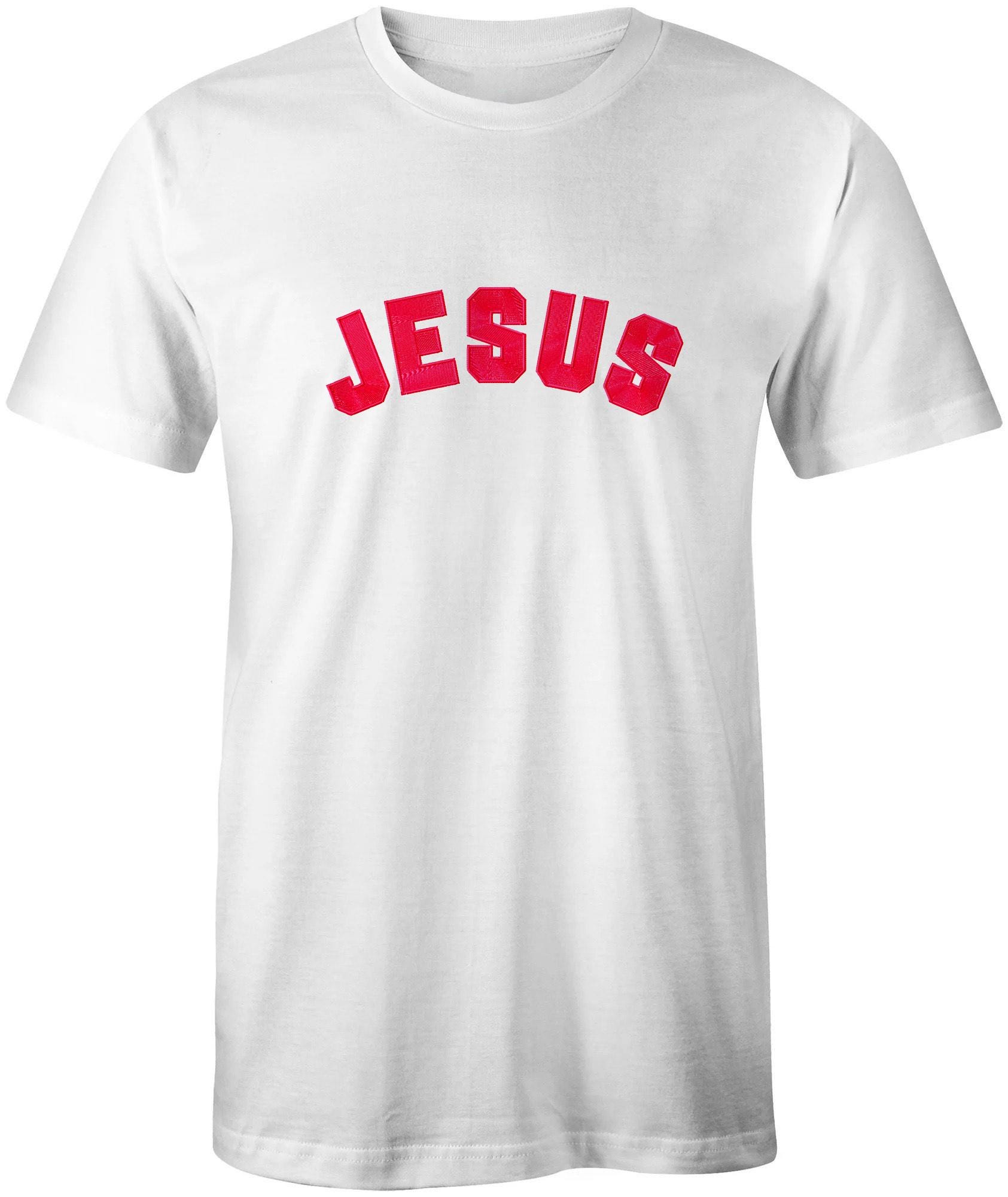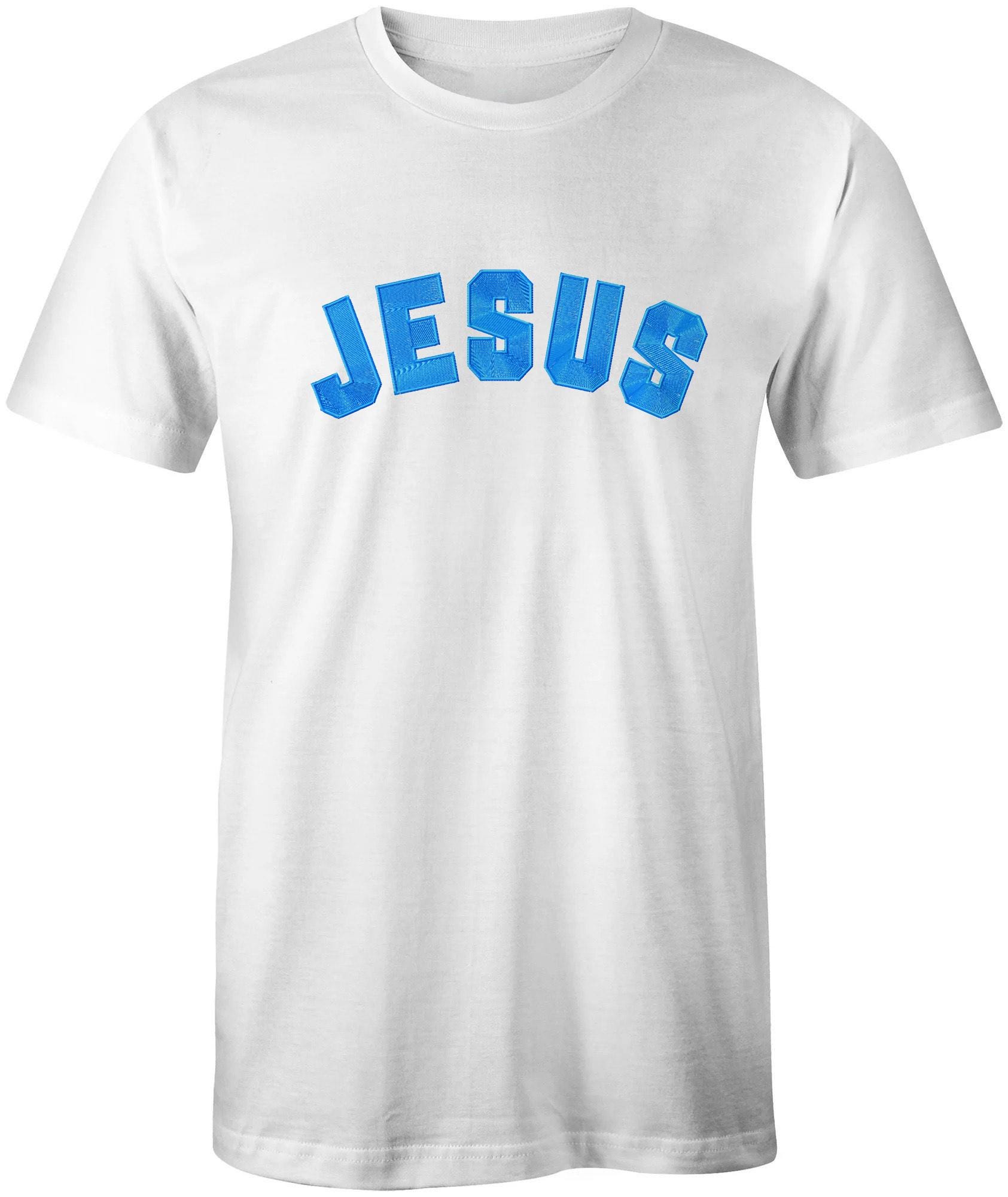 Celebrate your faith with this beautifully embroidered “Jesus” T-shirt — a simple, meaningful way to share His name wherever you go.