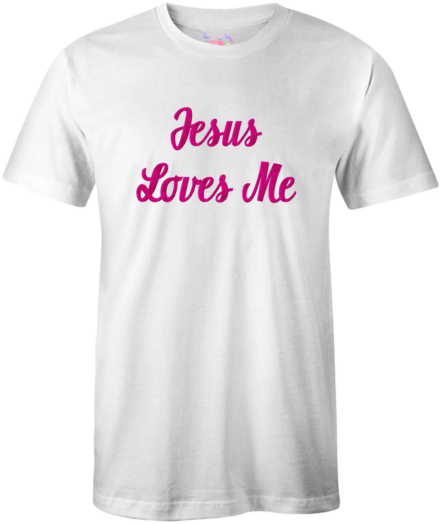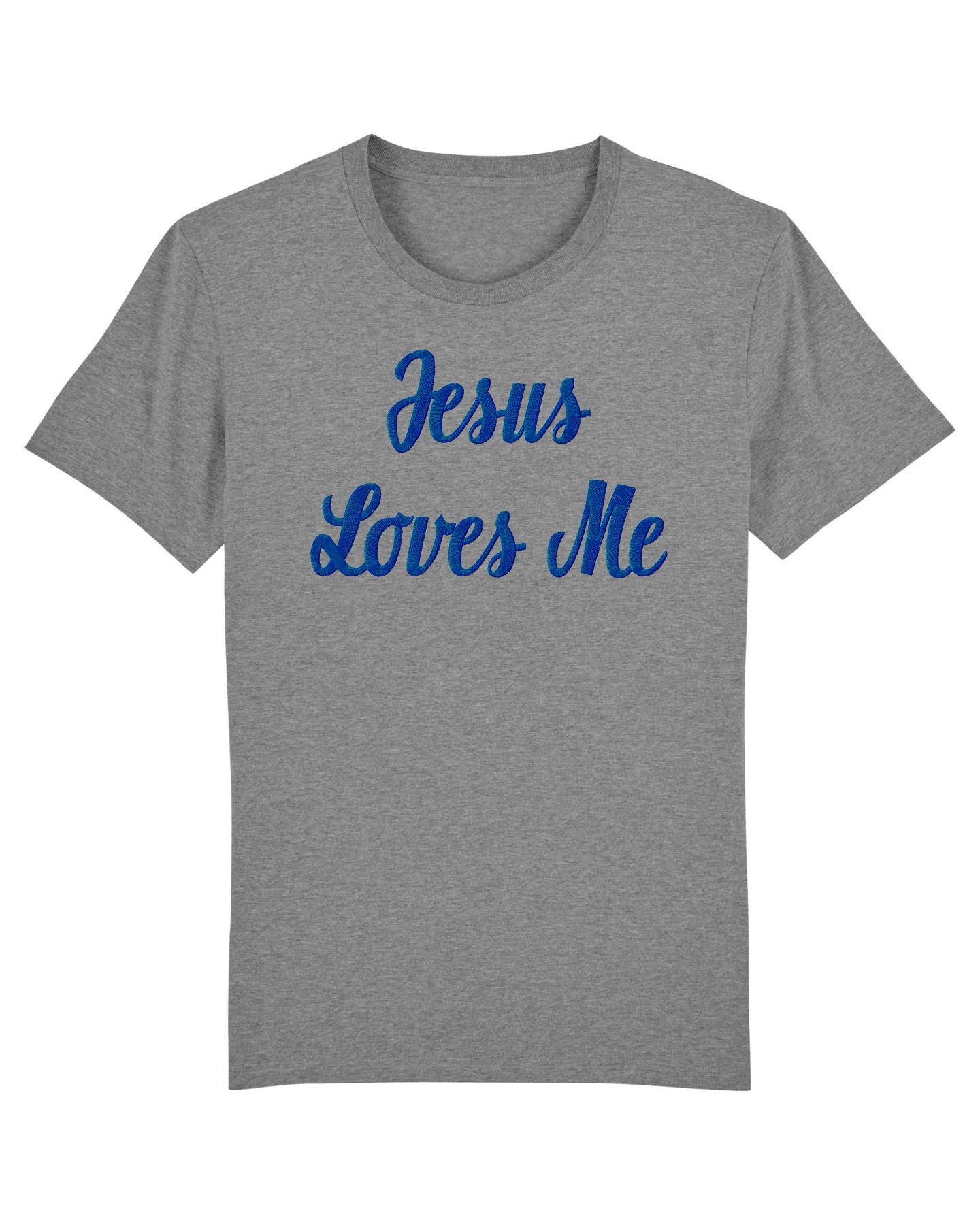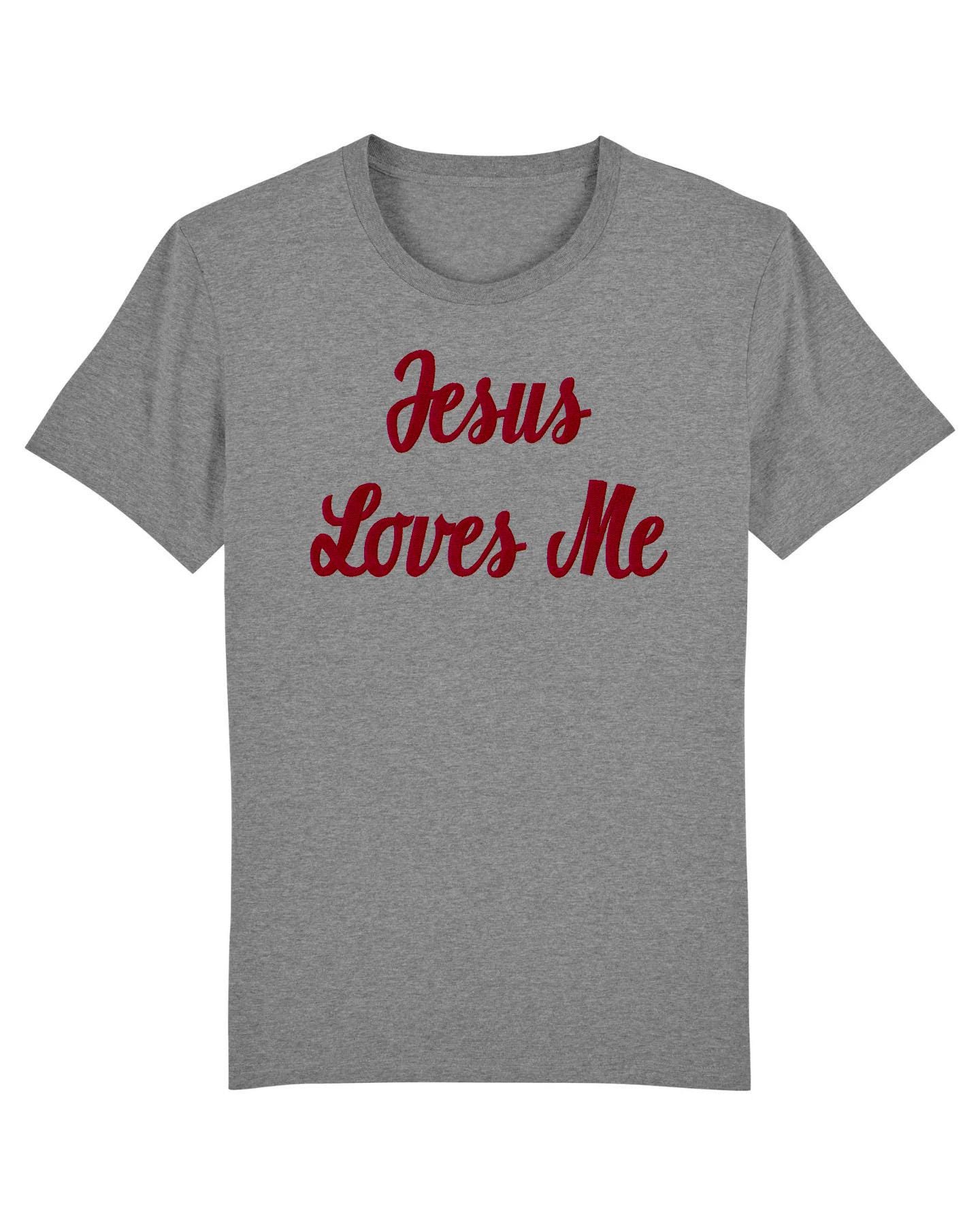 Christian Embroidered T-shirt Jesus loves me 100% cotton white black grey Faithful wear