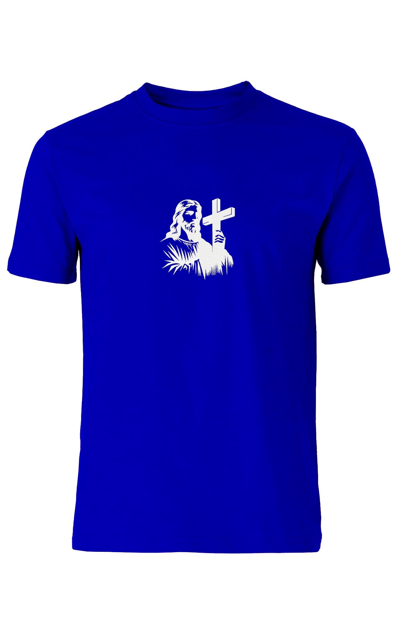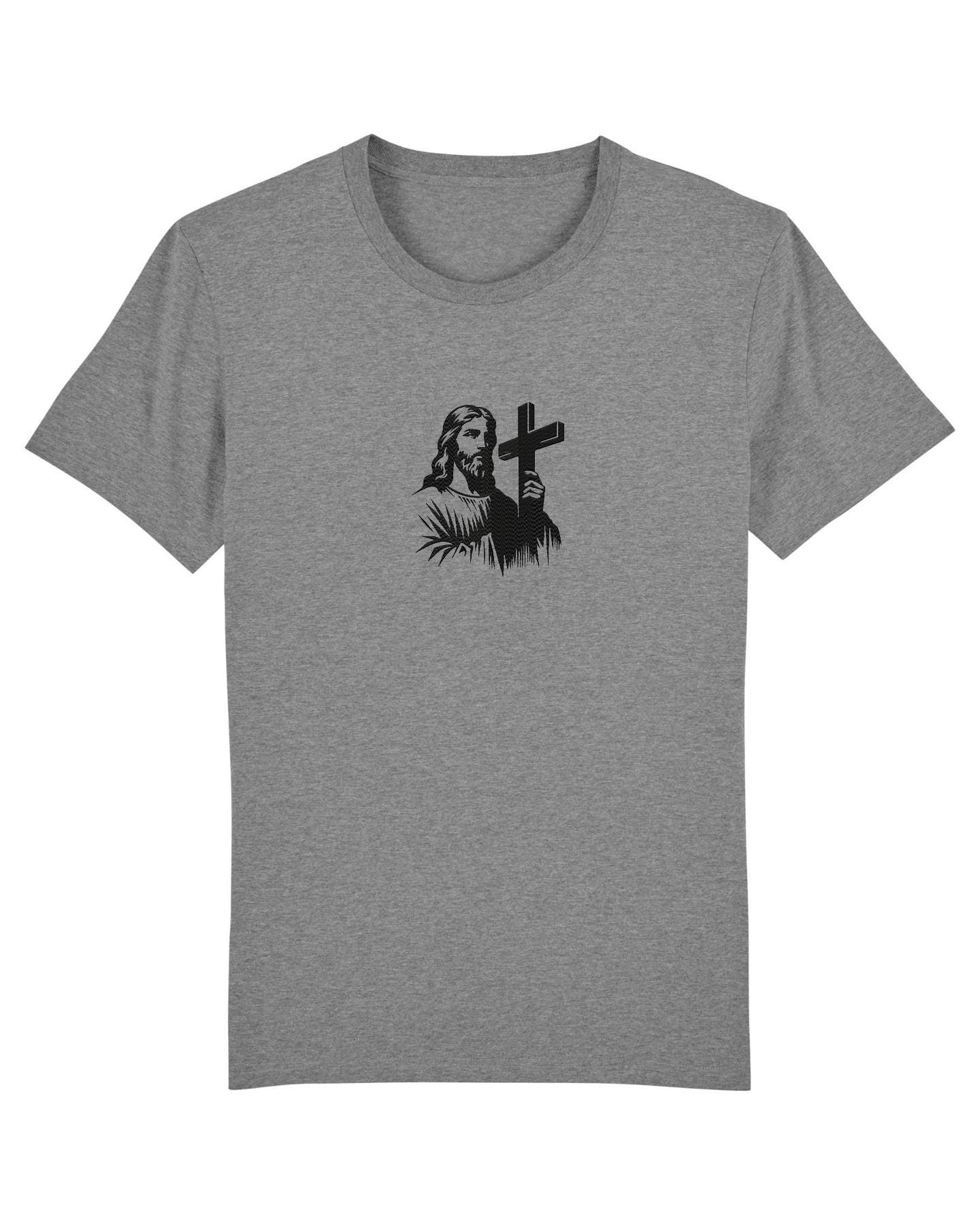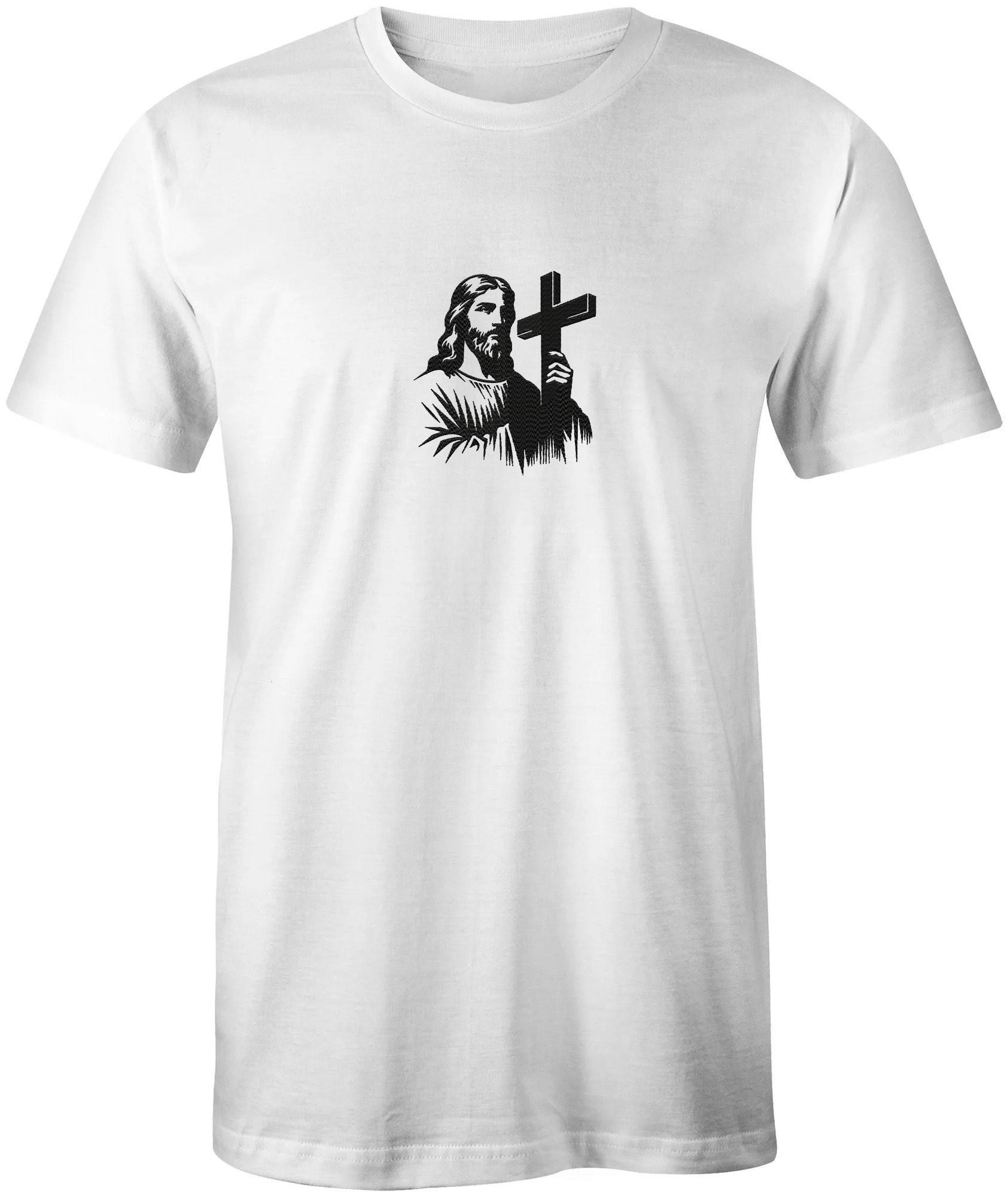 Embroidered Jesus with Cross T-Shirt, Christian Cotton Tee, Christian gifts for men and women